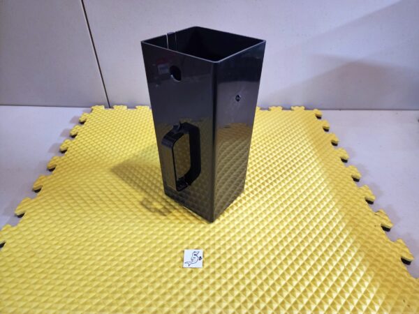 AP Studio 1, 2, 3, 4 Snack Vending Machine plastic Coin Box with handle. The dimensions are 10 3/8" H x 4 5/8" W x 4 1/4" D. The coin box is used.